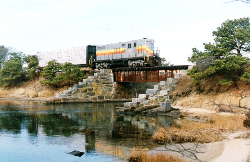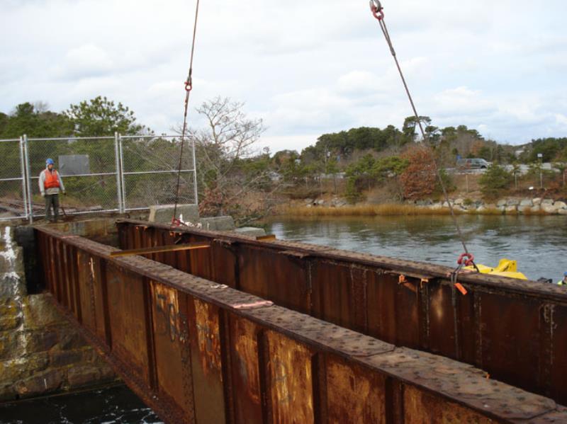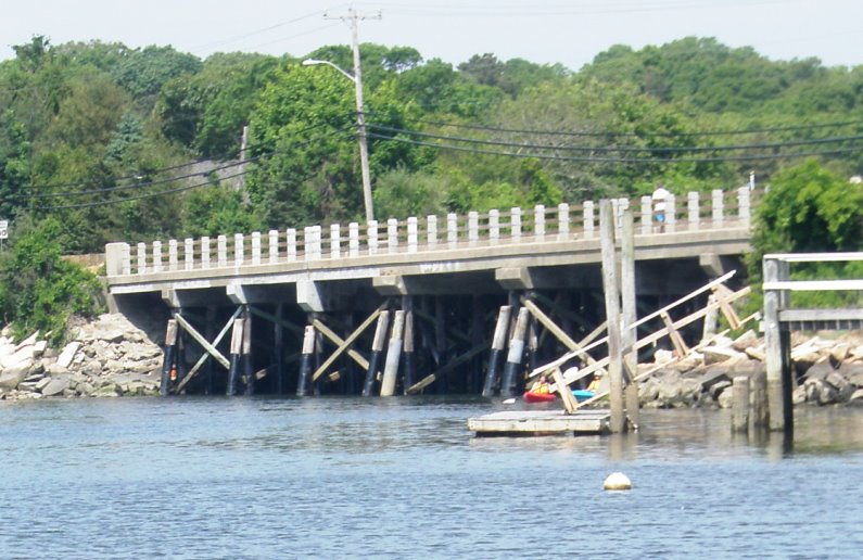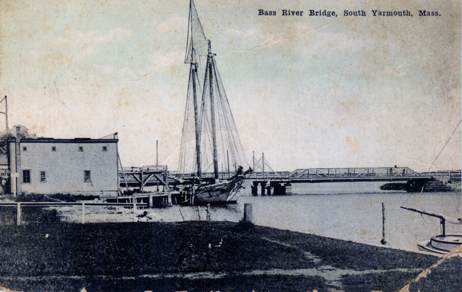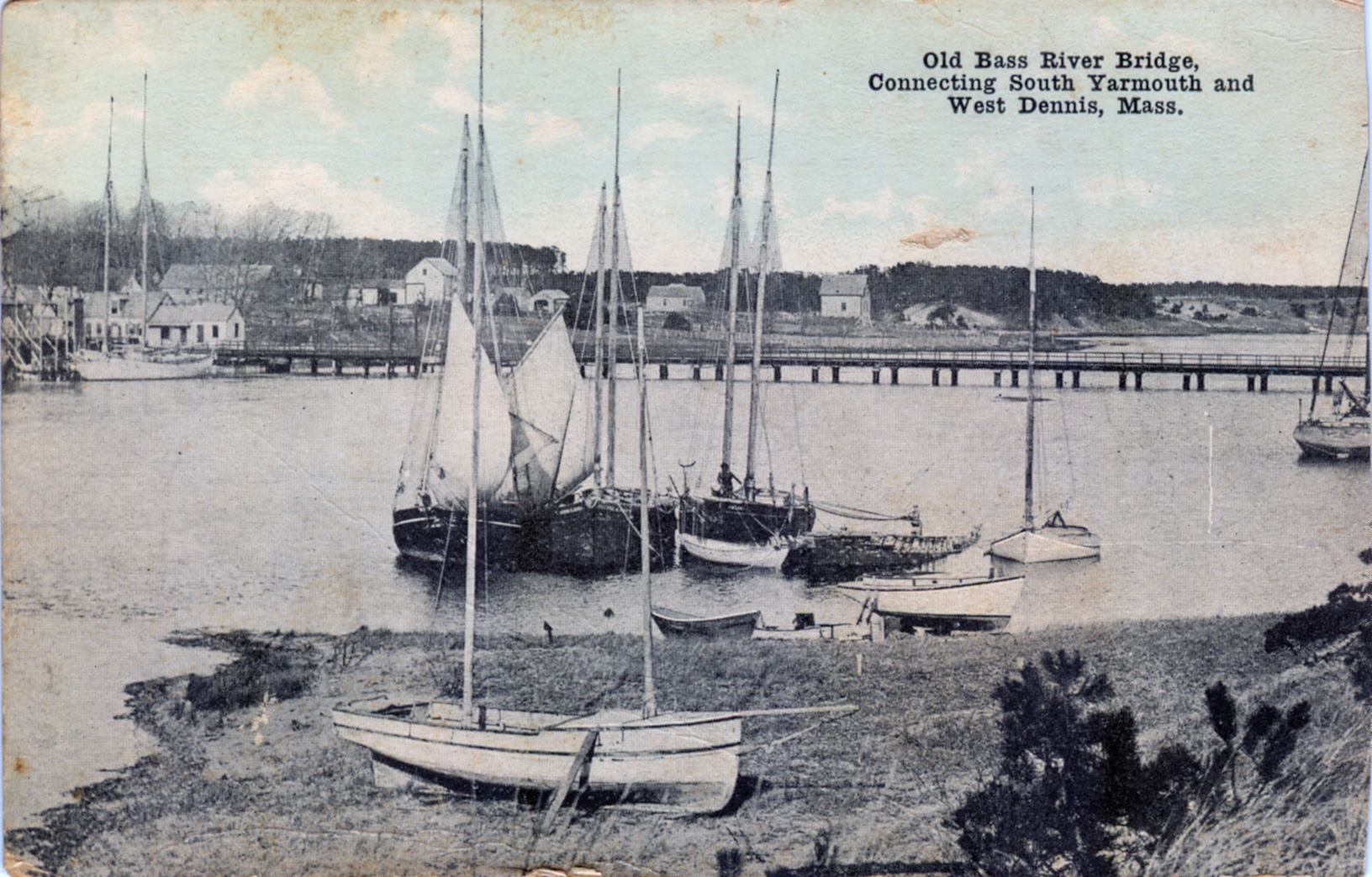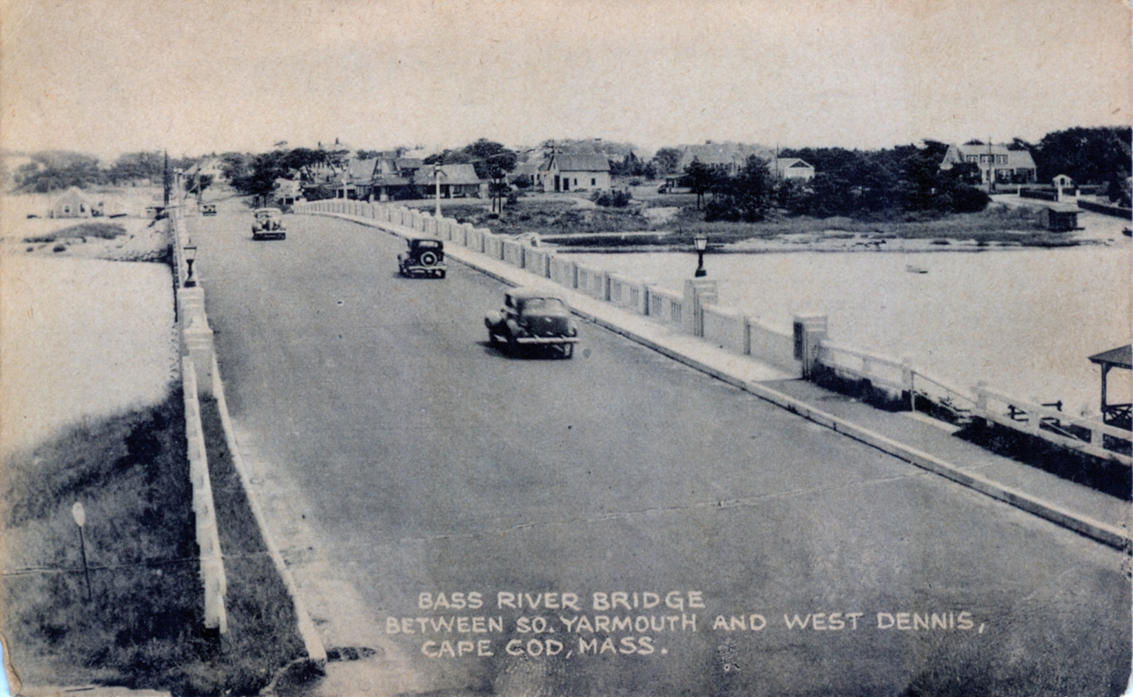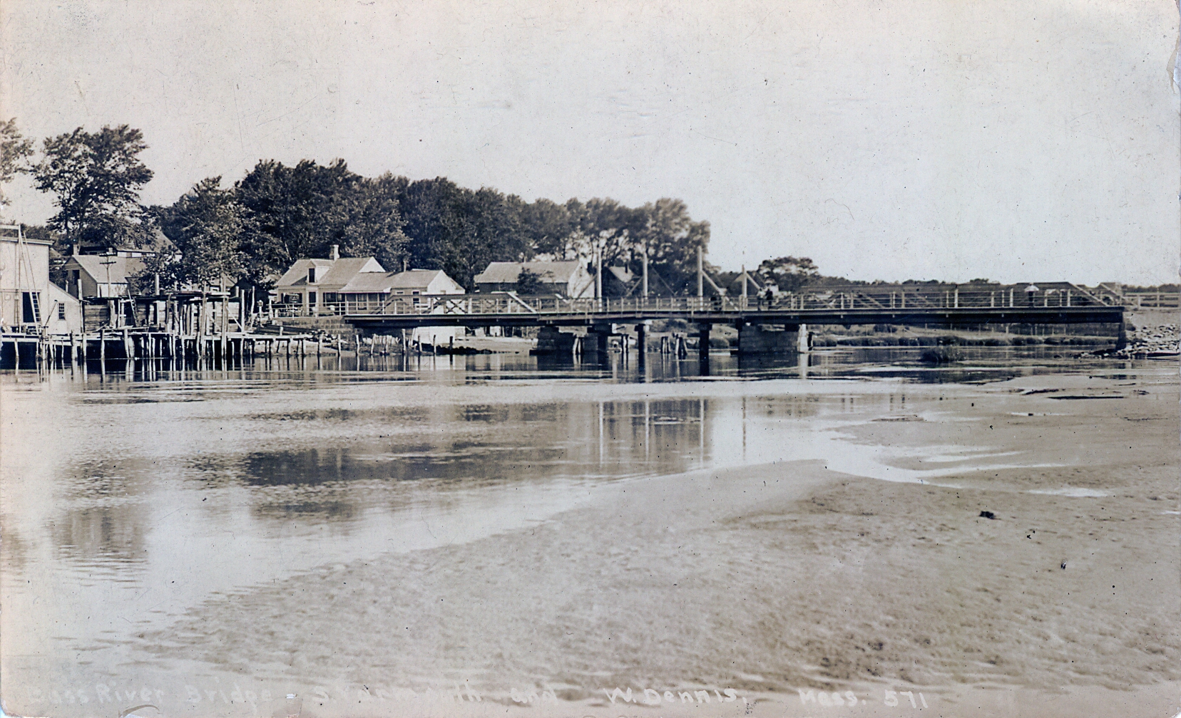 Yarmouth side, a smaller span on the Dennis side, and an earthen bank in the